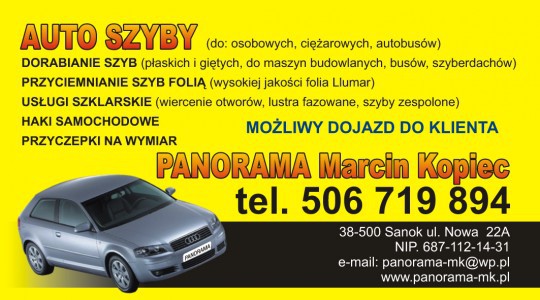 Auto szyby Sanok i montaż haków Panorama Marcin Kopiec